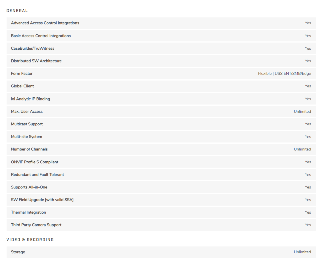 Open-platform architecture supports a virtually unlimited number of cameras and edge devices.